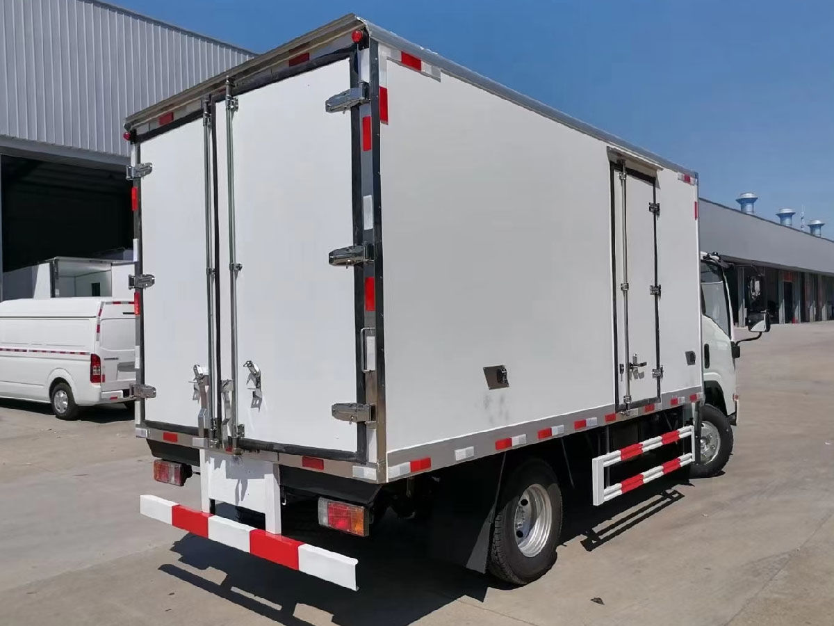(2)廂板材質(zhì):內(nèi)外壁板選用國內(nèi)優(yōu)質(zhì)玻璃鋼(不吸光、隔熱性好、硬度強、抗氧化);中間保溫層為XPS擠塑聚笨板或聚氨酯;廂體厚度8CM。地板采用鋁花紋板,門邊條采用迷宮式橡膠密封條。