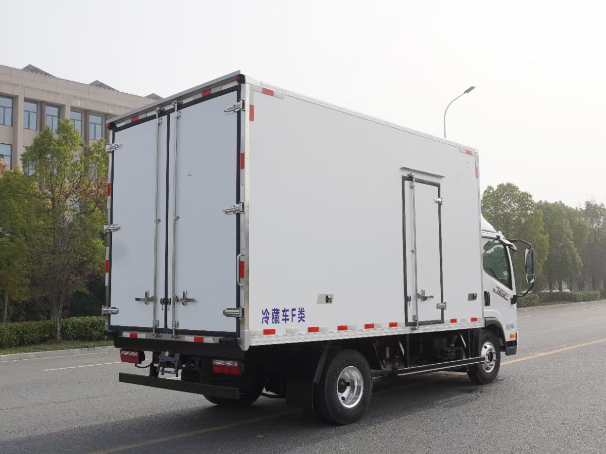 (2)廂板材質(zhì):內(nèi)外壁板選用國內(nèi)優(yōu)質(zhì)玻璃鋼(不吸光、隔熱性好、硬度強(qiáng)、抗氧化);中間保溫層為XPS擠塑聚笨板或聚氨酯;廂體厚度8CM。地板采用鋁花紋板,門邊條采用迷宮式橡膠密封條。