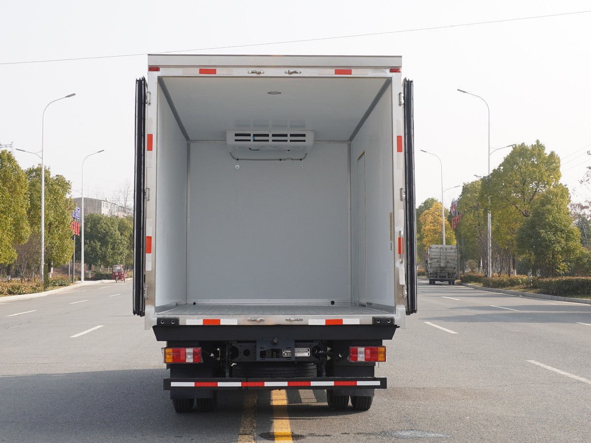 (2)廂板材質(zhì):內(nèi)外壁板選用國內(nèi)優(yōu)質(zhì)玻璃鋼(不吸光、隔熱性好、硬度強(qiáng)、抗氧化);中間保溫層為XPS擠塑聚笨板或聚氨酯;廂體厚度8CM。地板采用鋁花紋板,門邊條采用迷宮式橡膠密封條。