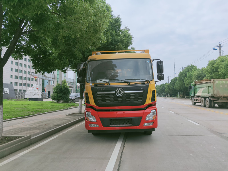 底盤配置: 采用東風(fēng)天龍底盤,工程黃駕駛室(顏色可選),原廠雙層大梁,法士特9檔變速箱,軸距4350+1350,1100鋼絲胎,原廠abs,帶方向助力,離合助力器,氣剎制動,帶冷暖空調(diào)。
