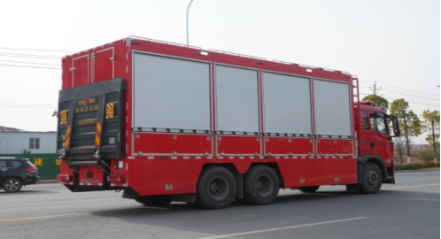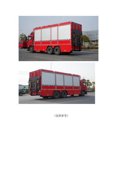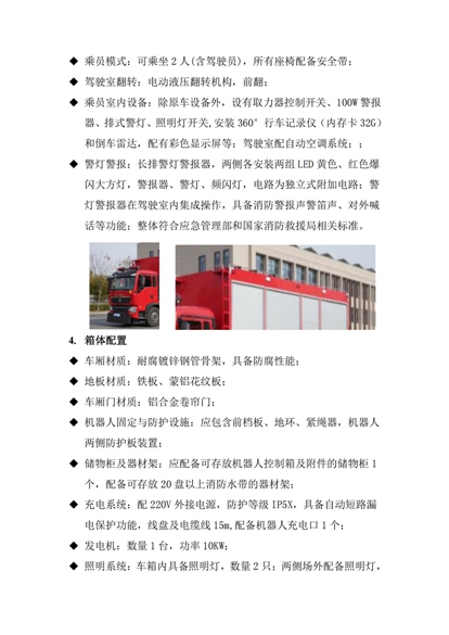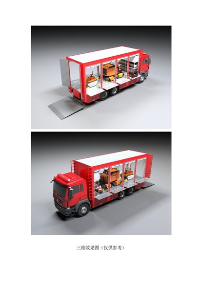 該模塊車由、重汽豪沃器材消防車、全地形消防滅火機(jī)器人、防爆消防滅火偵察機(jī)器人、發(fā)電機(jī)、滅火輔助器材等組成。