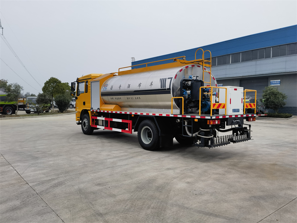 瀝青的灑布控制不僅可以在駕駛室內完成,也可以在車尾的操作平臺上進行控制。